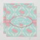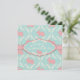 Aqua, pink, and white damask print with sweet polka dot Easter bunnies and 3D-look tag and gingham check trim Easter hunt invitation.
