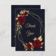 Chic and elegant navy blue thank you card featuring beautiful burgundy flowers and some elegant gold leaves.