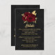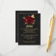 Chic and elegant wedding details enclosure card featuring beautiful burgundy flowers and some elegant gold leaves.