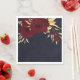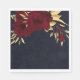 Chic and elegant navy blue wedding paper napkin featuring beautiful burgundy flowers and some elegant gold leaves .