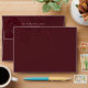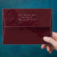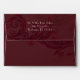 Lovely wedding thank you card envelope done in burgundy, with lovely swirl flourishes in wine and dark maroon, on the outside and inside of the envelope. Light grey text return address, on the back flap, is fully customisable and ready to personalise with your information.