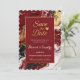 Announce your wedding date with opulent luxury and dramatic style! This stunning Save the Date card features a bold, artistic border of rich red, black, and white marble textures, accented throughout with shimmering faux gold foil veins.