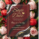 Set a tone of luxury for your upcoming nuptials with this stunning Save the Date invitation. Featuring a dramatic burgundy, black, and white marble swirl background, this design is elevated by flowing veins of shimmering gold glitter. The card is finished with a sophisticated scalloped edge, adding a unique, romantic touch to your wedding announcement.