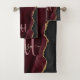 Chic Burgundy Gold Glitter Agate Custom Monogram Bath Towel Set