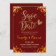 Announce your special day in style with this stunning burgundy and gold geometric Save the Date card. Featuring a rich, deep red background with luxurious gold accents, this design exudes elegance and sophistication. Perfect for formal weddings, fall celebrations, or evening affairs, this Save the Date ensures your guests mark their calendars for your unforgettable day. Personalise it with your names and wedding details for a beautiful keepsake.