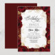 Modern stylish flowers birthday party invitation burgundy with gold roses, dust on with a gold ink pour effect (the gold is a digital effect, not real foil) and modern calligraphy. Classy and elegant, simple and modern invitation.