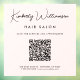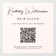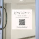 Custom light pink window cling decal for your business featuring your name showcased in a chic signature script and business type in modern lettering. Input your website address to create a QR code for customers and clients to scan for a list of your products, services, hours, etc.