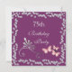 Elegant personalised / personalised custom 75th birthday party celebration invitations for women and girls. On the front of these glamourous birthday party invites is a beautiful classy ornate silver image of swirls in the shape of a stemmed flower, at the end of the stem are 3 / three chic pink butterfly images. The border of this beautiful feminine birthday party invite is of a trendy glitz and glam frame of bling rhinestones jewels diamonds image, all of which is printed on a pretty subtle purple background. The reverse of this birthday party invitation for females has the same diamond border and 2 / two pink butterflies printed on the purple background. These original, unique, glitzy, shabby chic romantic invitations are printed/decorated on both sides /double sided printing. If you need any assistance in customising your product please contact me through my store and i will be happy to help you. SOME ELEMENTS USED ARE BY SNAPPYSCRAPPY AT HTTP://SNAPPYSCRAPPY.COM.