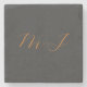 Chic calligraphy grey orange monogram name initial stone coaster