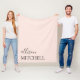 Chic Calligraphy Monogram Blush Pink Fleece Blanket