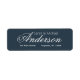 Elegant return address label with a prominent name line in a calligraphic script typeface. First name line in light compressed typeface to offset script. Address details in an understated minimal font, but still clearly readable. Fully personalizable. Contact to assist with customisations to fit your need. NOTE: For proper formatting you may want to manipulate text with spaces and/or line feeds (returns).