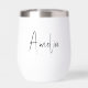 Chic personalised thermal wine tumbler showcasing your name monogrammed in a stylish calligraphy script. Elevate your glassware or surprise your mum, sister, friends, bridesmaids, bridal shower and bachelorette party guests, and other loved ones with a thoughtful and elegant gift. If needed, edit in the design tool to increase or decrease the script size for longer or shorter names.
