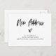 These black and white moving announcement postcards feature modern casual script that says "new address", along with a hand-drawn heart. There is more room on the back to add additional notes. A simple and chic design that is the perfect way to let friends and family know that you have moved.