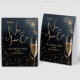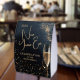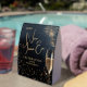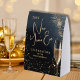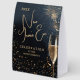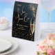 Stylish New Year's Eve party table welcome tent sign - choose PLASTIC or PAPER - features a champagne glass, clocks, confetti and fireworks on a midnight blue background with your party details in chic lettering. MATCHING items in our collection.