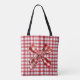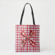 Embrace effortless style with the Chic Check Bow Tote. This eye-catching bag boasts a sophisticated white and red chequered pattern with a playful bow detail. Perfect for carrying your essentials, from groceries to books, it can be personalised with your name for a unique touch of elegance.