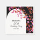 Elegant cherry blossom flower and white arch frame with vibrant typography on a black background birthday napkins.