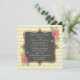 Lovely bridal shower invitation, done in a square shape with a light yellow with white chevron pattern background. Graphics of a yellow and coral glassy looking decorative framed grey text area, in the middle, has stylish colourful flowers, in two corners. The backside is done in same yellow and white chevron zigzag pattern. Personalise all the text for your bridal event. Beautiful invitation the bride will cherish.