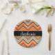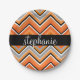 Chic Chevron Pattern Black Grey Orange with Name Paper Plate