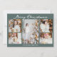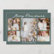 Chic Christmas Family Photo Collage Grey Green Holiday Card