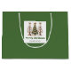 Minimalist watercolor christmas tree gift bag with playful leopard pattern in earthy green and gold. Personalise with your custom name for a stylish Christmas gift presentation.