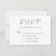 Classic black and white wedding RSVP enclosure card featuring "RSVP" in a chic modern script and the RSVP details in elegant serif typography.