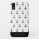 Chic coastal black and white anchor pattern, personalised with name, iPhone case.