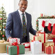 The artwork is of an abstract floral pattern of colourful poinsettia flowers. Beautiful and rich shades of the green, blue, and red colours make this a warm piece to add to your holiday attire.