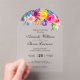 Elegant chic colourful wildflowers weddingarch transparent invitation with beautiful flowers and leaves. Make a bold and beautiful statement with these chic, colourful, bright wildflowers wedding acrylic invitations. Featuring a stunning array of vibrant pink, yellow, orange, and purple wildflowers, these modern invitations bring a fresh and whimsical charm to your special day. Printed on sleek, crystal-clear acrylic, the elegant typography and artistic floral design create a perfect balance of contemporary sophistication and romantic elegance. Ideal for garden, boho, or outdoor weddings, these unique invitations set the tone for a stylish and unforgettable celebration.