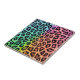 Fun and vibrant leopard fur print like a certain brand we all loved in the 90's and is coming back in popularity! The photo shows the texture which makes it look like it is soft fur or fabric. Colour has many shades of the rainbow against a black leopard or cheetah animal print pattern. Whether you want to use this tile as a little coaster or trivet for a drink or plate... or you want to go big with a kitchen backsplash or bathroom tile, is up to you! Do a full wall, border, or just an accent tile. Let your interior design dreams fly! Glam Trendy Colourful Rainbow Leopard Animal Print ceramic tile