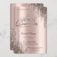 Elegant glitter crown on rose gold glitter ombre quinceañera party invitation.