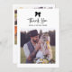 This elegant and chic, black and white thank you card features modern, whimsical script. A trendy, black coquette bow and your favourite wedding photo are featured on the front. The back has a multi photo grid with room for four more wedding photos. All colours can be changed, including the bow.