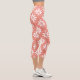 Chic Coral and White Floral Customisable Pattern Capri Leggings