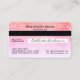 This is the perfect business card for a trendy, stylish, girly, and modern nail technician. This design features a glamourous and chic faux printed sparkly Coral pink and blush pink sequin glitter ombre gradient design with a place to add your business logo in the cute, unique, and clever style of a credit card. It's the perfect way to promote your business to potential customers.
