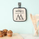 Explore a unique pot holder featuring an elegant and chic typography and calligraphy script design, with the option to personalise it with your couple's names and family's last name in a black typography style on a cream ivory background. Incorporate your family's establishment date to craft a piece as distinctive as your shared history. This appealing, ornamental, and fashionable design is ideal for both the home baker and the professional chef.