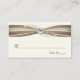 Pretty cream coloured wedding reception place cards, with graphics of a graphics of a champagne coloured satin ribbon, at the top, decorated with a heart shaped diamond and pretty cream flourishes. Beautiful seating name cards ready for you to hand write your guests names and table numbers on. Erase any text you do not want on the card.