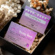 An elegant modern, stylish beauty Hair and makeup artist credit card style loyalty business card with a modern script font typography on a chic faux purple pink glitter sparkles ombre on pink. all text is customizable, add your social media. Featuring faux rose gold stripe. Add your logo, your monogram and QR code.