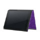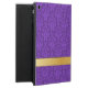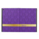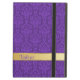 Elegant iPad Air case, with built in stand, done in a lovely purple on purple damask pattern. Graphics of gold tone ribbon, across the bottom, has custom purple text ready to personalise.