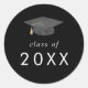 Chic Dark Black Grad Cap Class of 2025 Graduation Classic Round Sticker