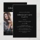 This chic dark black photo double graduation party invitation is perfect for a modern outdoor party. The simple dark design features classic minimalist black and white typography with a stylish sophisticated feel. Customisable in any colour.