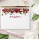 Popular now design for boho wedding envelopes features deep red marsala flowers roses mixed blush roses and fresh eucalyptus greenery foliage and woven into faux gold frame. Hand drawing script lettering.