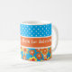 Chic Ditsy Orange and Red Floral Pattern on Blue Coffee Mug