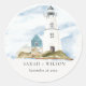 Chic Dusky Aqua Blue Lighthouse Mountain Wedding Classic Round Sticker