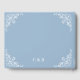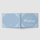 Elegant and chic light dusty blue wedding guest book for any vintage coastal vintage theme wedding. This combination of blue and white are perfect for a cottage core, bridgerton inspired vintage chic wedding for garden or old money events. Personalise all of the text to read whatever you like. Customise the monomgram and add a custom wedding saying or phrase. Designed by Simple Desert Designs Studio. Contact us for colours that match your wedding theme perfectly.