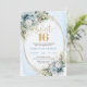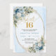 Chic Dusty Blue Floral Gold Sweet Sixteen Invite