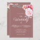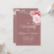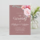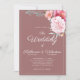 An elegant chic dusty pink and silver formal script with botanical mint green and pink watercolor floral wedding invitations.