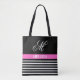 Chic Elegant Black White Stripes With Initial Tote Bag