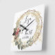 Chic Elegant Floral Wreath Wedding Square Wall Clock