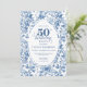 Make this milestone celebration unforgettable with a 50th birthday invitation featuring classic French toile de jouy roses in elegant shades of navy blue, royal blue, dusty blue, and deep blue. This refined floral design blends timeless European charm with modern sophistication, creating a truly classy invitation worthy of a 50th birthday celebration.