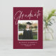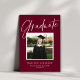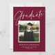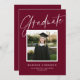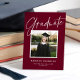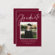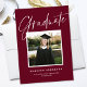 This chic graduation announcement features a rich burgundy red background (customisable), elegant typography, and one square photo. "Graduate", your student's name and all other text are white. This is a chic and elegant design. You can customise this design even further by adding another photo or additional text to the backer.