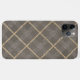 Contemporary faux gold plaid tartan gingham pattern on a dark taupe brown background. Beautiful, modern, and cool cover for the trend-savvy and art-loving hip trendsetter, artsy motif lover who wants to protect their phone from dust and dirt, wear and tear. This design is available for iPhone 6, 7, and 8 Plus, 10 or X, XR, XS, 11, 12, 13 Mini, 14, and 15 Pro Max cellphone cases. Show off your style, look fashionable trendy, and feel stylish with a unique design on a mobile device accessory of your choice.
